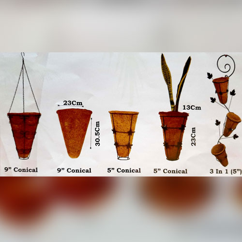 Fancy cone shaped coco liners fixed in an attractive metal holder to make your home and living area pleasant and beautiful, filled with greenery and colour. Eco-friendly, retains moisture for a longer duration.